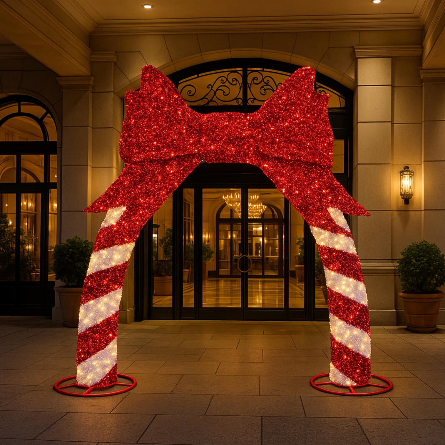13ft H Tinsel Candy Cane with Bow Arch with 10% Twinkle LED