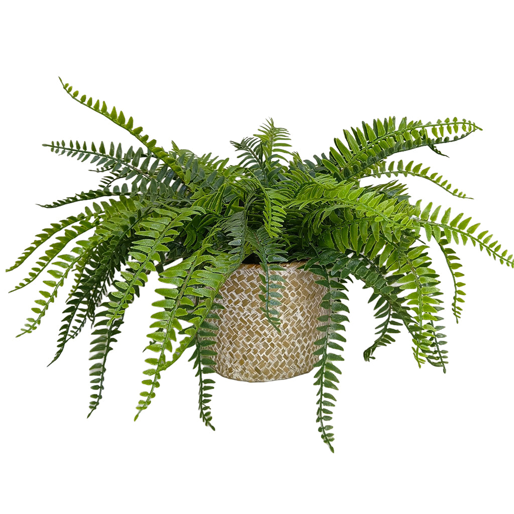 Candlelit Seagrass Basket Sword Fern with Candle Holder. 18in