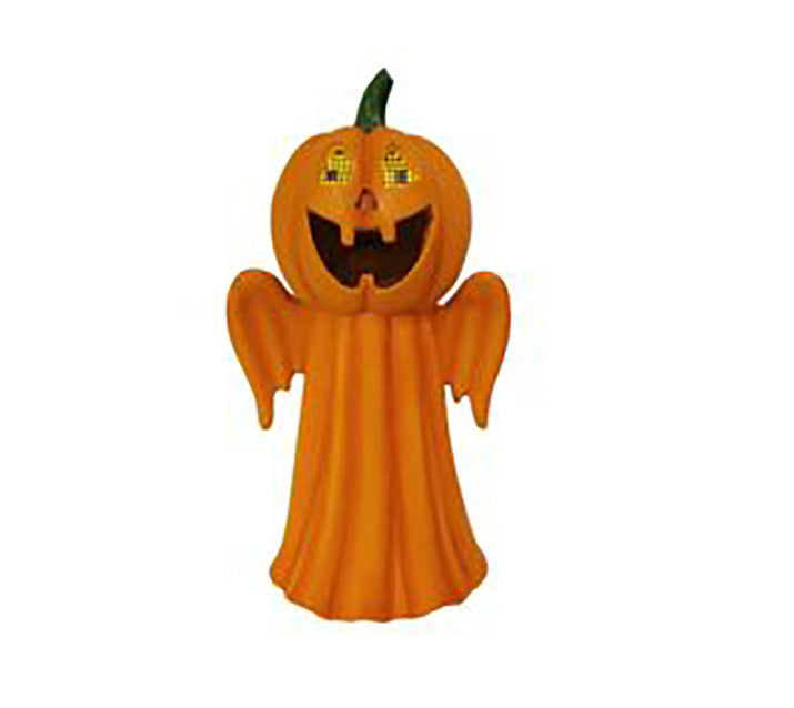 Elevate Halloween decor! Standing 18.3IN tall, this resin piece pairs an orange ghost body with a pumpkin head and spooky LCD eyes. Ideal for adding festive, eerie charm to your Halloween displays.
