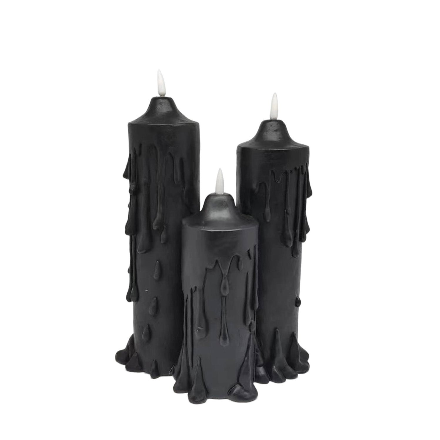 TRIO BLACK MELTED HALLOWEEN CANDLES | POLYRESIN | 9.84 INCH HIGH